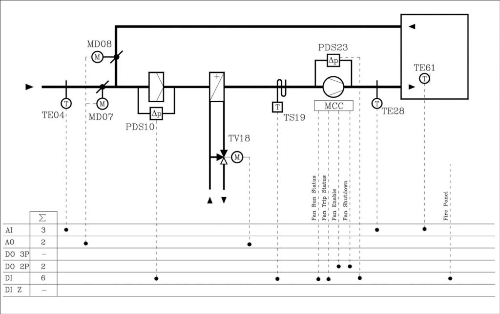 - کنترل تدریجی شیر کویل گرم توسط حلقه کنترلی PI از سنسور دمای هوای رفت