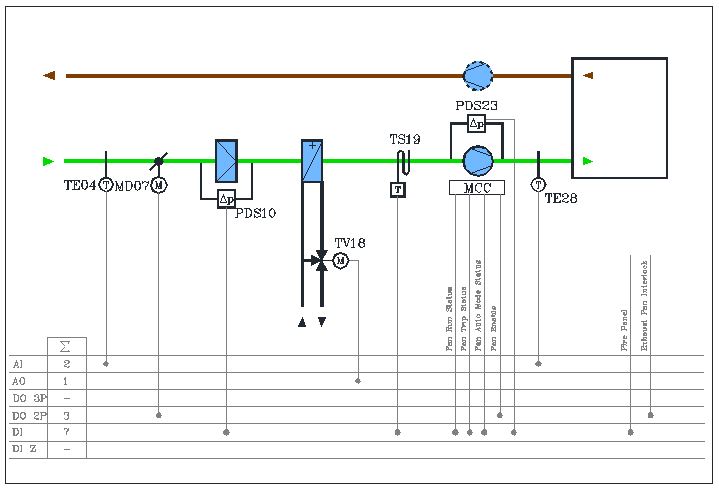 - کنترل تدریجی شیر کویل گرم توسط حلقه کنترلی PI از سنسور دمای هوای رفت